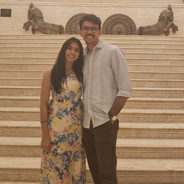 Ours is an arranged match that quickly felt like destiny. Introduced by a family friend, we spent a month talking, and by the second week we had already said “yes” in our hearts. Meeting in Mumbai confirmed the magic—we shared three unforgettable days, and parting was the hardest moment. I am a Senior Auditor at Ernst & Young, raised in Udaipur and Qatar, while Amisha, from Jodhpur, runs her own architecture practice in Chennai. At 30 and 28, we bring together different cities, cultures, and experiences. Our wedding is not just a union of two people but of families, traditions, and generations. As we begin this new chapter, we would love for our guests to witness our love story that bridges states and brings together people from different backgrounds. We invite our guests to celebrate with us the colors, warmth, and joy of a North Indian wedding, filled with rituals, laughter, and love that creates a shared story of togetherness.